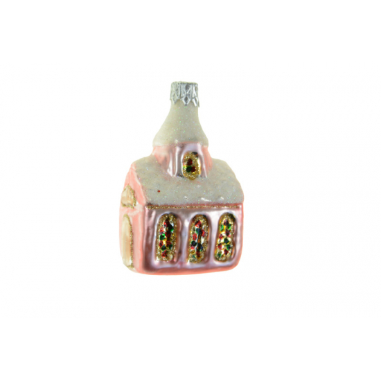 Karácsonyfa dísz templom üveg 4*3*7cm rózsaszín5999124551930