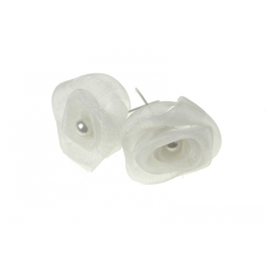 Tű fém organza virággal s/6 fehér