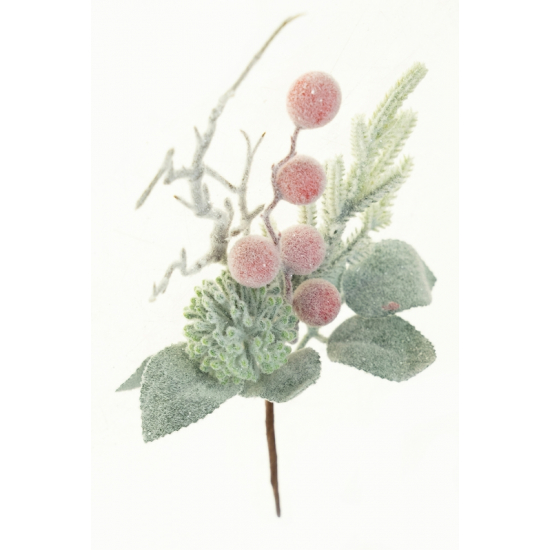 Pick levél + piros bogyó + fenyő ág 32cm havas zöld5999124585720